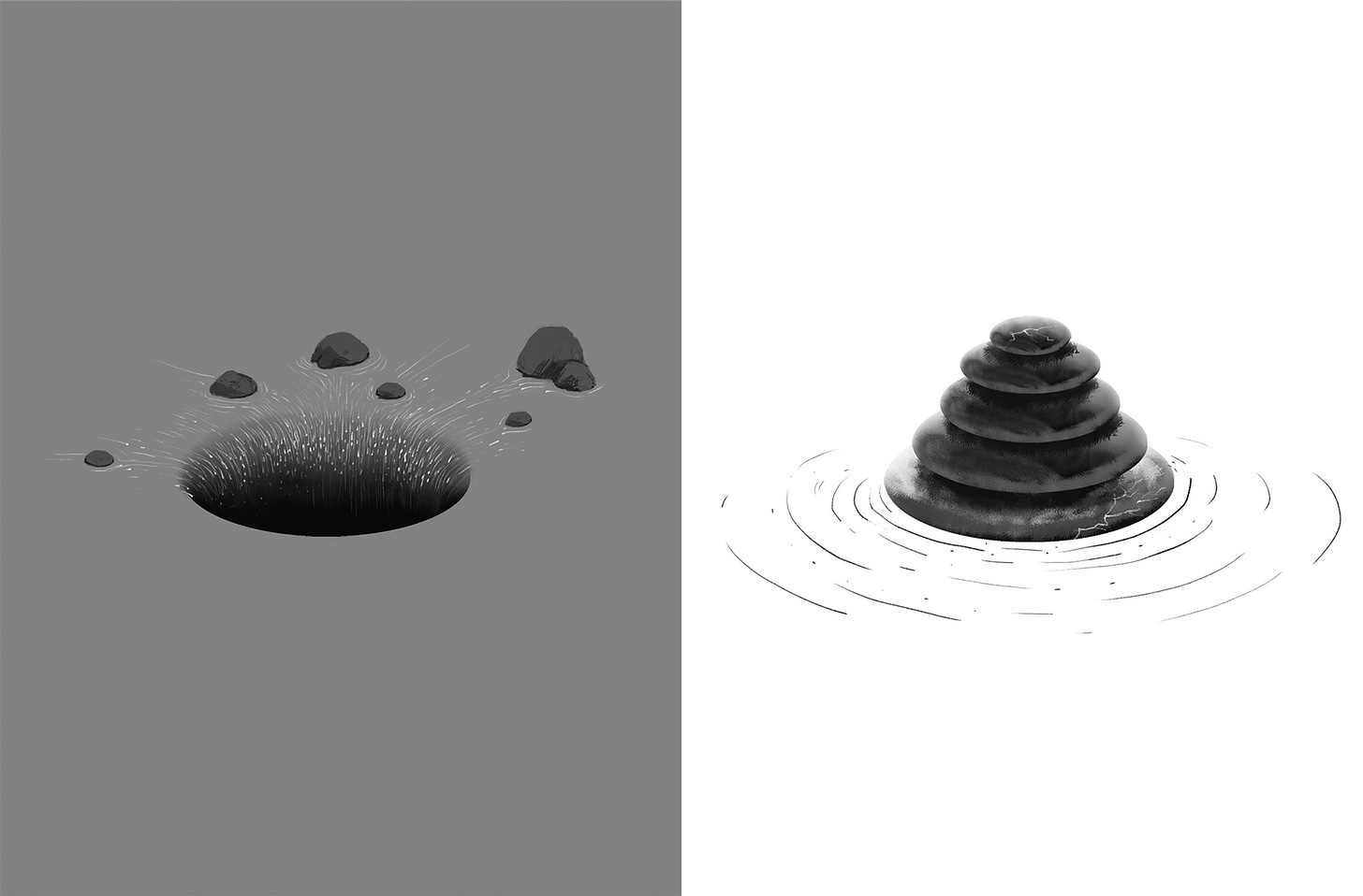 Last but not least, I made a whole zine!! I’m so proud that I finished on time! And so thankful for my lovely husband taking care of my kiddo to be able to do so. It is an illustrated zine from the Tao Te Ching - Verse 2 that I previously mentioned that was a big inspiration for this show. It also gave me the opportunity to use the other illustration/design I didn’t choose for the show for the cover ;)